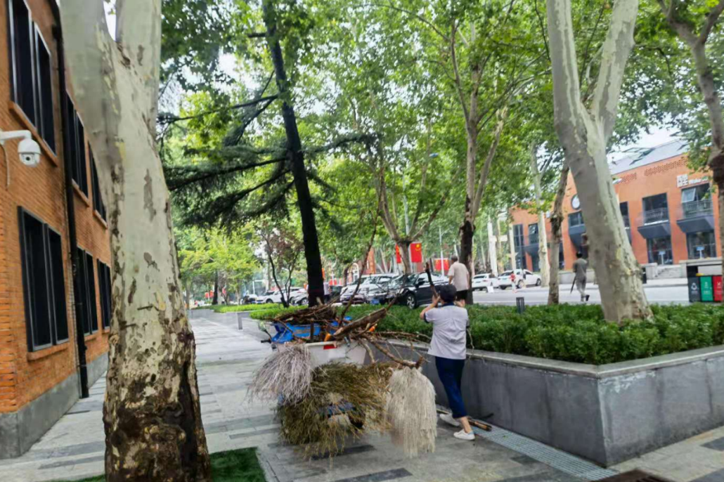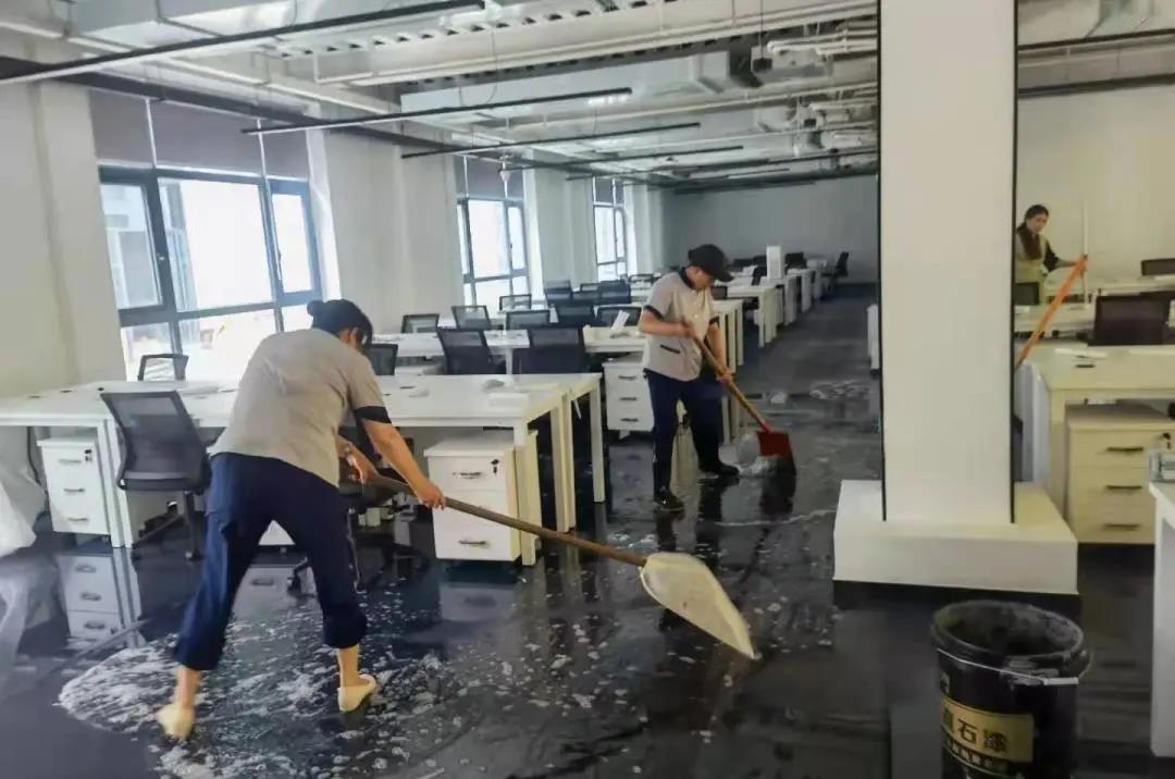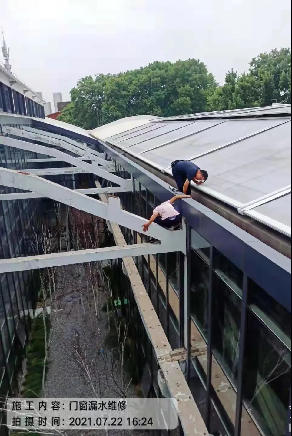 冒雨检查屋顶排水口是否通畅、清理堆积的杂物、前往漏水现场、协调解决问题;不顾积水巡视园区,及时发现被雨水冲开的井盖,树立提醒标识;在大雨过后,第一时间帮助清理客户办公区、仓库积水,清理园区内掉落的树枝;7月21日,工作人员挨家挨户为客户做好电路检查,7月22日恢复了用电。当前芝麻街园区每天都在持续进行不留死角的消毒、消杀与清洁,并加强巡视检查,排除安全隐患,最大限度减少损失,确保各方面的安全。