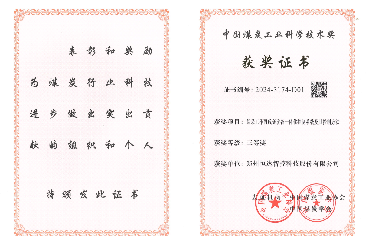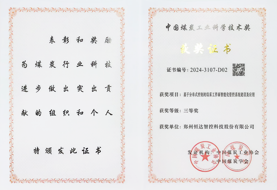 此外,k1体育“运输巷道支护运一体化系统”荣获中国煤炭工业科学技术奖二等奖,k1体育“超长综采充填关键技术及装备研发”“基于分布式控制的综采工作面智能化管控系统建设及应用项目”“基于异构网络融合定位的煤矿井下安全管控系统研发与应用”“综采工作面成套设备一体化控制系统及其控制方法”四个项目荣获中国煤炭工业科学技术奖三等奖。
