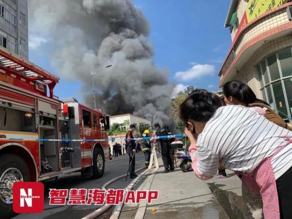 海都君赶往途中看见,蘑菇云一样的浓烟正不断向外冒出,同时可以闻到很刺鼻的烧焦味。火灾现场已经拉起了警界线,消防员正在从不同角度进行救火,但是由于部分着火点位于铁皮下方难以被水流冲击到,故还不时有火舌冒出来,给消防工作带来了一定困难。在百杨巷与杨周路口一幼儿园的家长在急着将自己的孩子接回家。