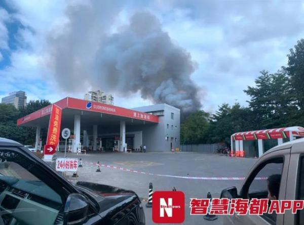 记者来到浦上加油站看到,火灾的烟雾蔓延到加油站内部,据加油站工作人员介绍,火灾发生后,加油站立刻切断电源,停止营业,在加油站路口设置警戒线,车辆不可进入。