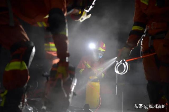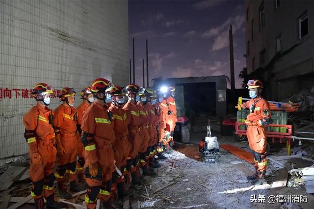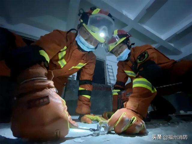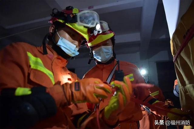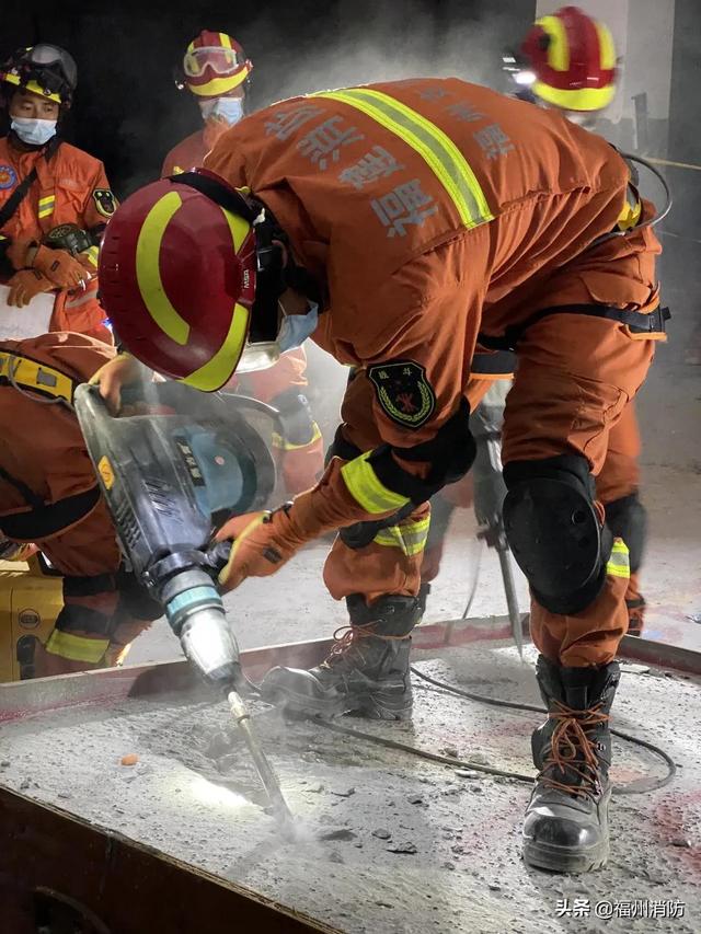 根据演练日程安排,福州市消防救援支队地震救援队顾不上休息,迅速领受任务,披星戴月连夜开展救援项目。