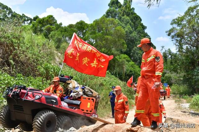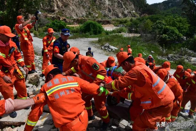 实战演练模拟泉州晋江市发生里氏7.0级地震,伴随次生地质灾害,部分地区出现路面坍塌、泥石流、山体滑坡,多个村庄倒塌损毁严重,地震导致正值召开大型商贸展的晋江某大型城市综合体发生火灾,有大量人员被困。福州市消防救援支队接到总队调度命令后,迅速集结全市地震救援专业力量携带千余件救援装备赶赴现场增援。
