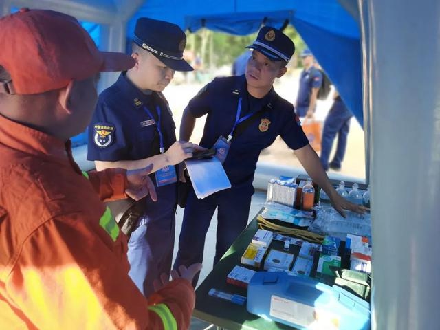卫勤保障方面,1名医师、2名卫生员随队出征,并协调厦门大学附属翔安医院1部救护车及医护人员等社会联动医疗力量驰援。到达前沿阵地后,战勤人员设置医疗救护点及隔离观察点,开展每日防疫、防蚊虫消杀;常见药品、医疗用具在桌上整齐摆放、一字排开,及时对参战指战员进行体温和健康监测,各类伤病情况都能得到及时处置。