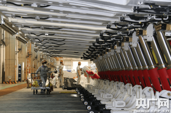 总装车间内的8.8米液压支架(央广网记者 王勇生 摄)